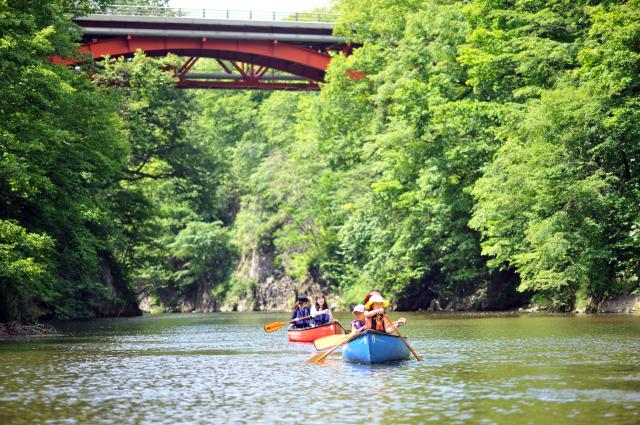 Jozankei is surrounded by valleys and lush forests. It is a spectacular sight, with deep green in summer and golden and crimson in autumn. Hop in a Canadian canoe and enjoy the sounds of the birds singing and the babbling of the river.