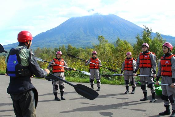 In order for you to experience the wonder and joy of nature experiences, NAC guides are constantly undergoing training and making every effort to minimize the risk of injury or accidents. All NAC guides are senior guides and river guides certified by the River Guides Association of Japan (RAJ). Professional guides who have received the necessary training will guide you, not only in river knowledge, basic techniques such as boat operation, river swimming, rescue and first aid, but also in excellent customer service and having fun in Niseko.