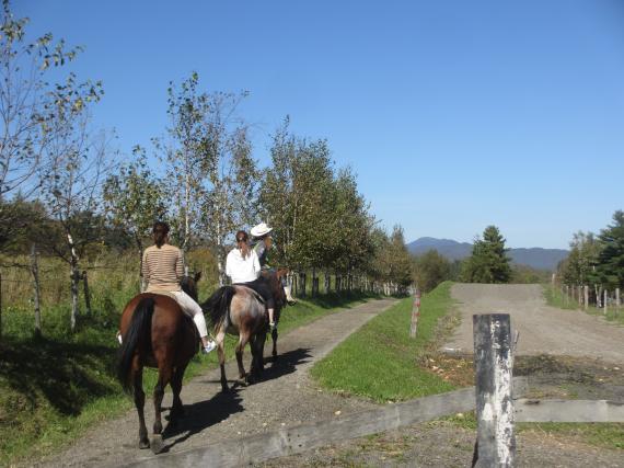 After practicing for about 20 minutes in the paddock, we will go around the ranch! After that, we will cross the road and guide you to the forest road while looking at the majestic Mt. Asahidake and the scenery that spreads out before you. Listen to the natural sounds of birds chirping and flowing water. If you’re lucky, you might meet some deer!