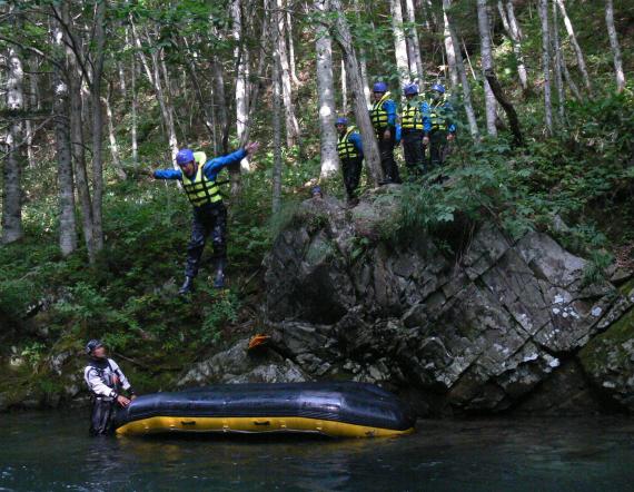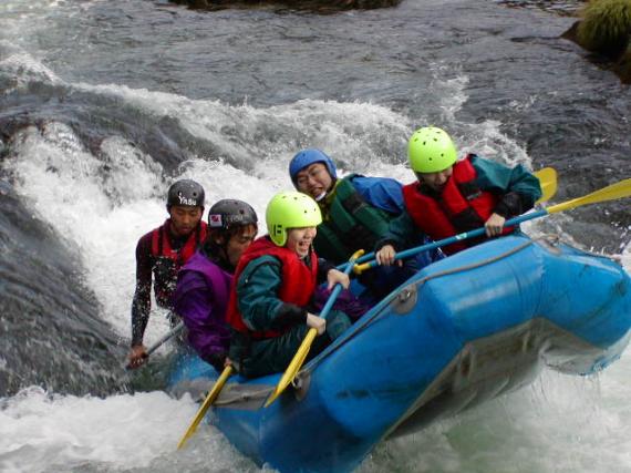 Sometimes you have to go down rapids, sometimes clear water...Everyone joins forces to go down the 5km river, and it's safe to say that the course is the most beautiful in Japan!!