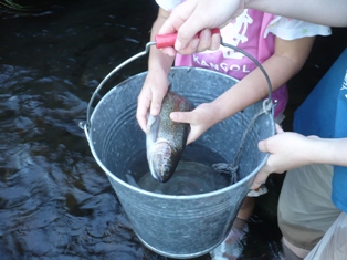 If the water temperature is low, you can either give up or you can keep trying! Catch yamame trout and rainbow trout hiding in the shade of rocks with your bare hands.