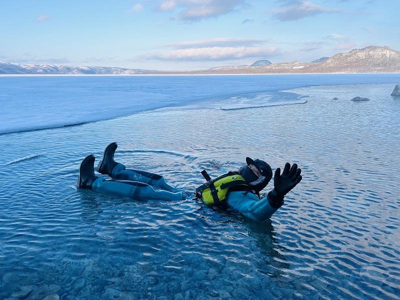 You can enjoy swimming in the frozen lake while wearing a warm dry suit.