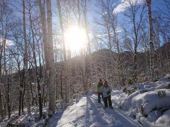 Enjoy walking and playing in the snowy forest! Sapporo transfer and rentals included.