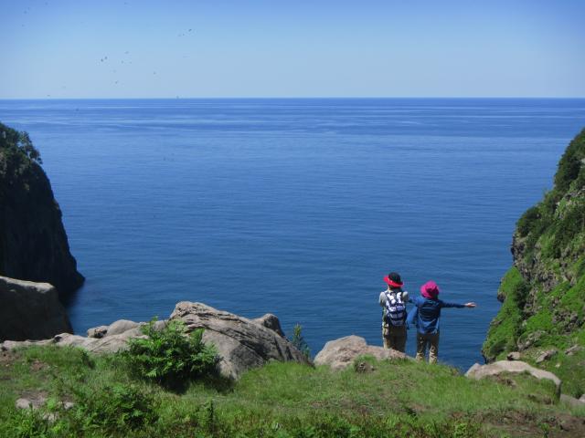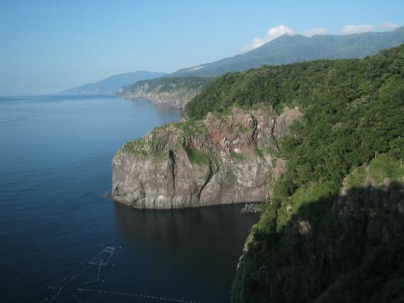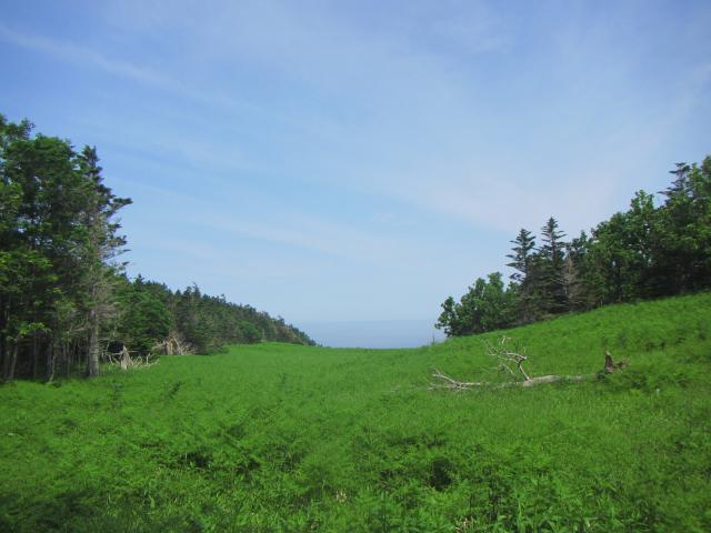 Beyond the grassland lies the blue sea of ​​Okhotsk.