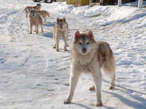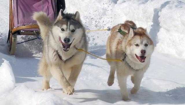 Please enjoy interacting with the cute huskies.