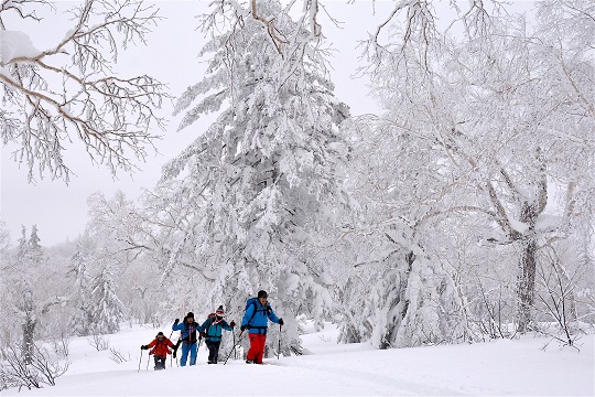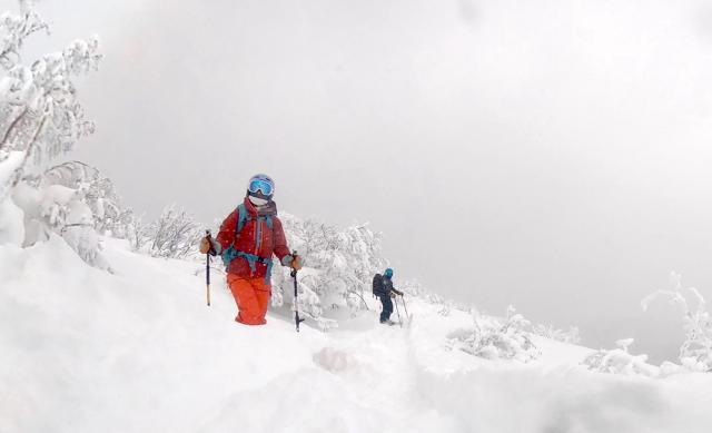 For skiers who want to be the first to ski powder, we will guide you to the best backcountry location: Hokkaido. On this tour you will take the ski resort gondola from the last station, put on your ski skins, and start the climb. It takes about an hour to climb to the starting point. You will get