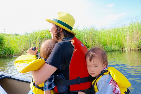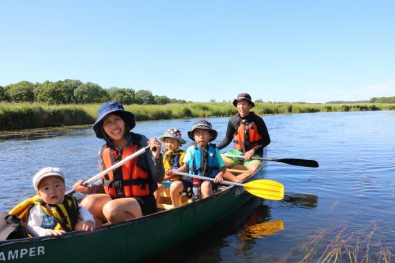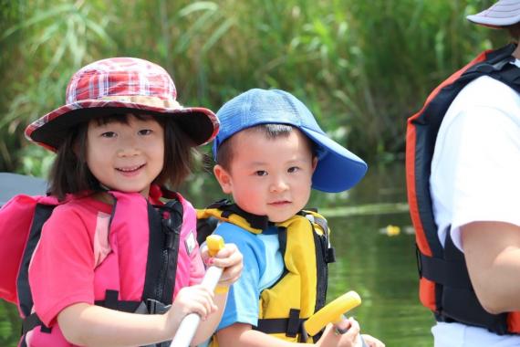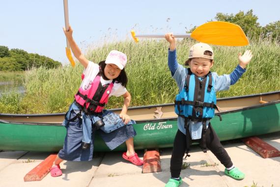 The Mimi River is a great place to go canoeing for the first time. It is a wonderful field that is hard to find even in Japan. Unless you stand up, you will not capsize. The river flows slowly, and even at its deepest, it is only about waist-deep for adults. It is a very shallow river, so you can rest assured.