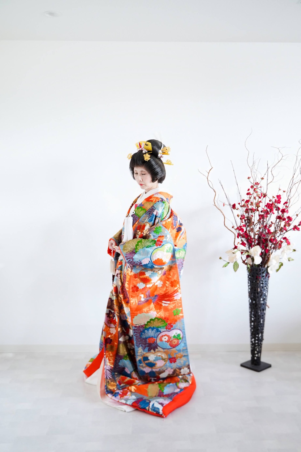 A plan to experience traditional Japanese culture. Wear a traditional Japanese bridal outfit along with a “bunkin takashimada” hairstyle and hairpin, then take photos!