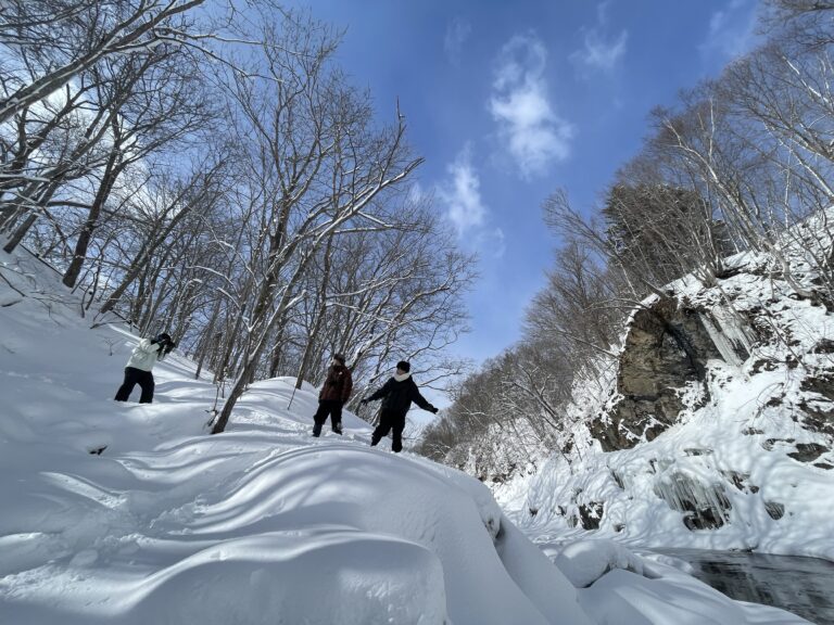 Visit a small town in northern Hokkaido on this snowshoeing adventure! In the Kinsenkyo Gorge of Takinoue, the Shokotsu River freezes every winter to create beautiful ice falls. Put on snowshoes to walk on the snow and view this beautiful sight along with winter creatures.