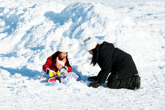 At the Snow Land, where you can enjoy the snow to your heart’s content on the vast land of Tokuju Farm, you can enjoy snow rafting, tubing, bubble ball, snow soccer, and more.