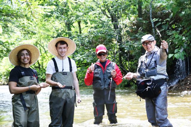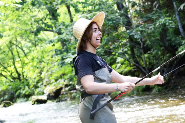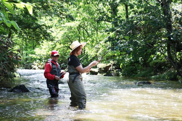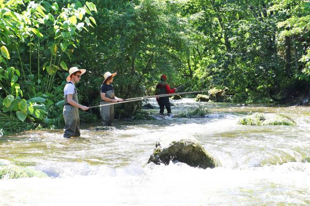 The Shufuto River that flows through Kuromatsunai is a popular spot for fishing enthusiasts, who go fishing for yamame trout and ayu sweetfish.