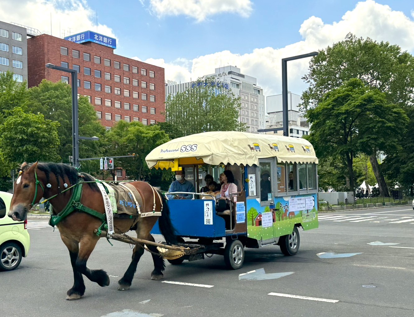 Join Dai-chan, a farmer racehorse from the famous Banei horse racing in Hokkaido. After retirement, Dai-chan has started pulling carriages around Sapporo. He is a gentle horse with a big appetite! Dai-chan is friendly and will take you on a tour of downtown Sapporo, from the Sapporo Clock Tower to the Red Brick Government building and through Odori Park.
