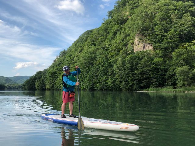 You can experience the very popular activity, "SUP" in Tokachi! Anyone can quickly balance and stand up, and once you get used to it, you'll be able to paddle out to the middle of the lake!! The sense of unity with nature you feel as you float quietly on the lake surrounded by sky and forest is something you can't experience anywhere else!!