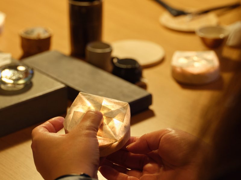 Get ready for a hands-on craft experience right in the artist’s studio. Fold and shape Hokkaido washi into either a beautiful lampshade or a pair of earrings. Take home a piece of art you crafted yourself, a lasting memento of your time in Sapporo!