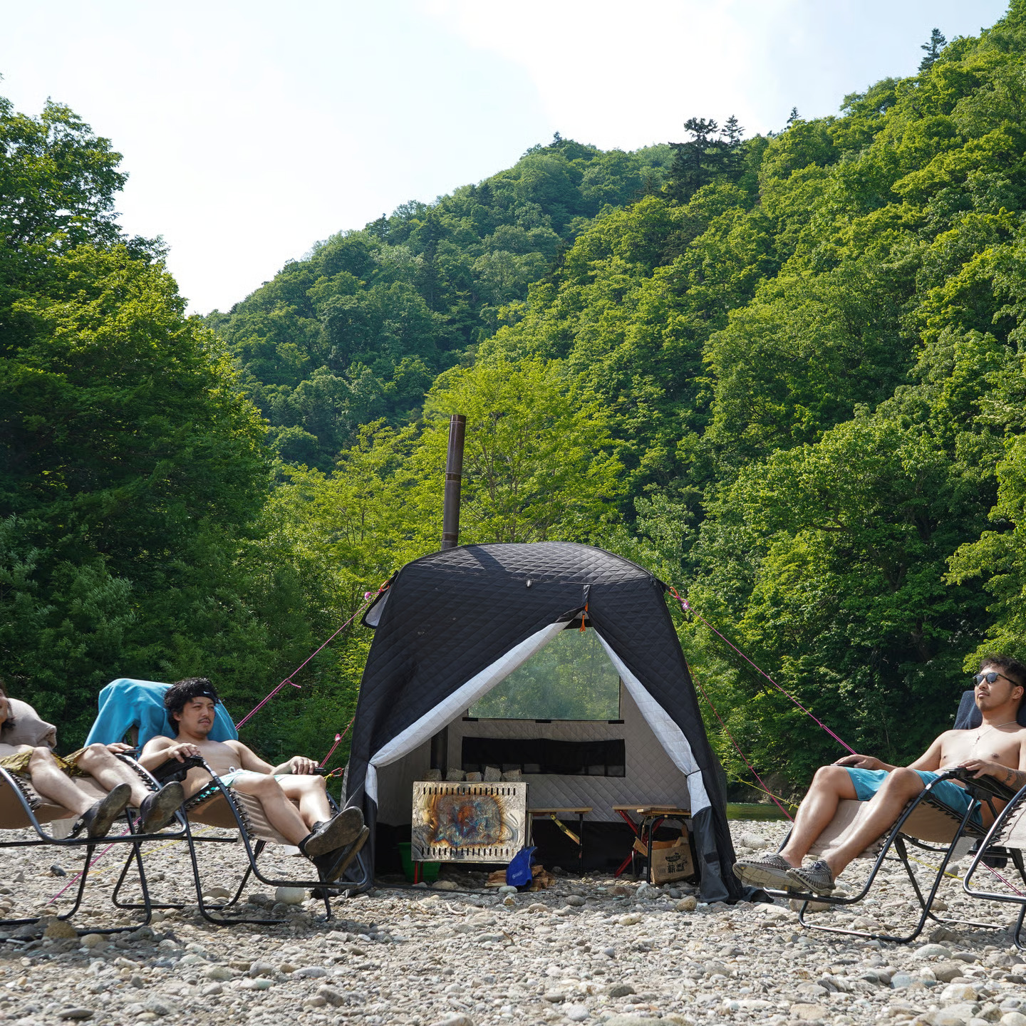 Then, enjoy the tent sauna on the riverbank. Take a dive into the river to cool off!