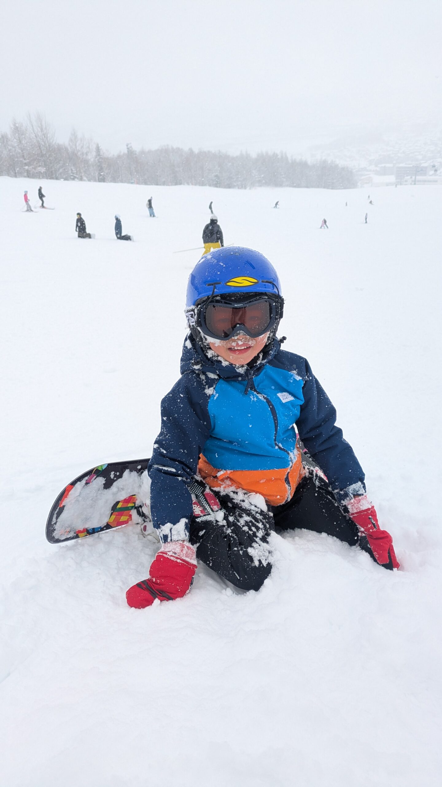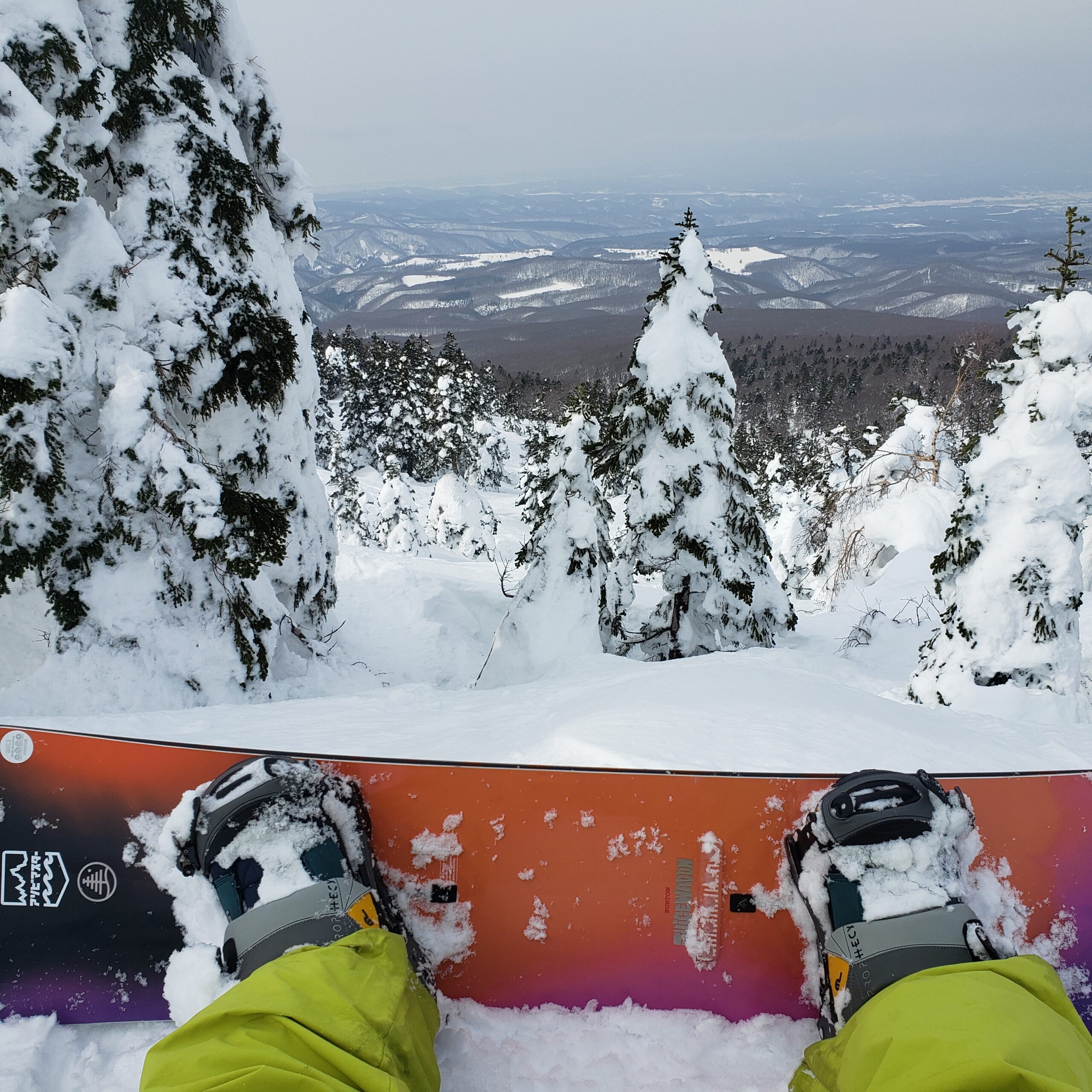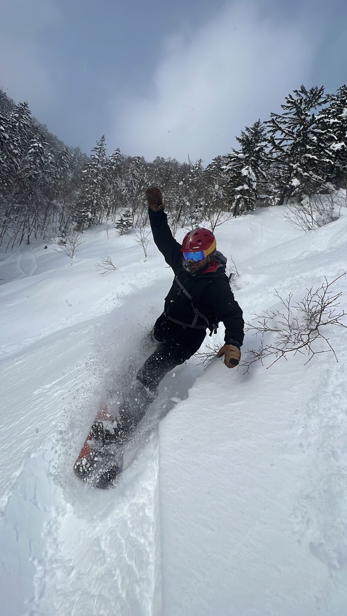Snowboarding through the fresh snow of the Asahikawa area