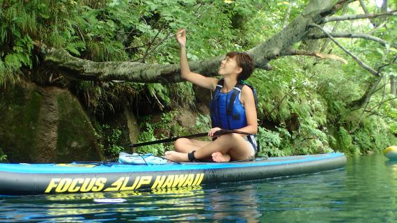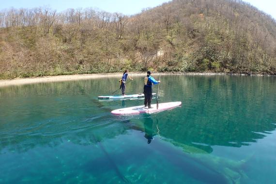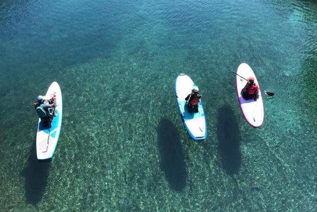 Due to the excellent transparency of the water, you can see a sheer cliff-like scene called “columnar jointing” below the water surface during the cruise. This is one of the highlights of SUP cruising on Lake Shikotsu. It is a crack that formed when the magma rapidly cooled and contracted when the caldera was formed.