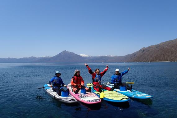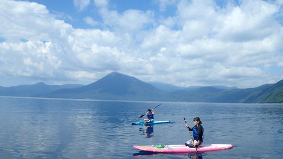 Enjoy a relaxing SUP cruise while enjoying the majestic scenery of Lake Shikotsu. Cruise amid the majestic scenery unique to caldera lakes, including Mt. Eniwa, Mt. Tarumae, and Mt. Fuppushi.