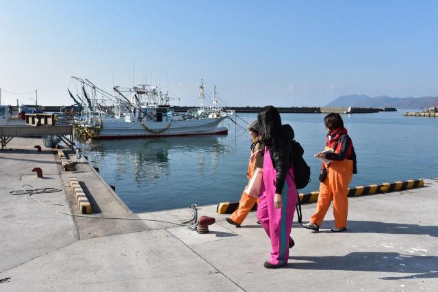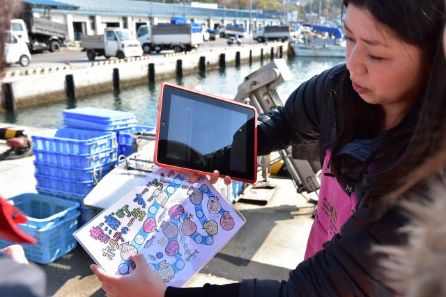 A local guide from the Funka Bay Toyoura Tourism Association will show you around the town! She will use a large felt model of a scallop and a game she made herself to guide you.