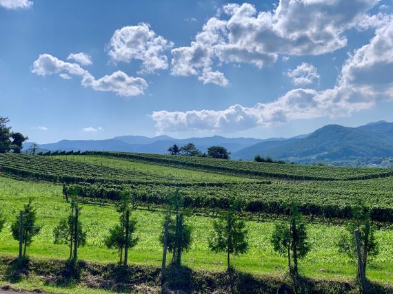 A 25km course recommended for beginner cyclists! Cycle along the beautifully landscaped farm roads where fragrant vineyards and various fruit fields spread out in the mountain valley.