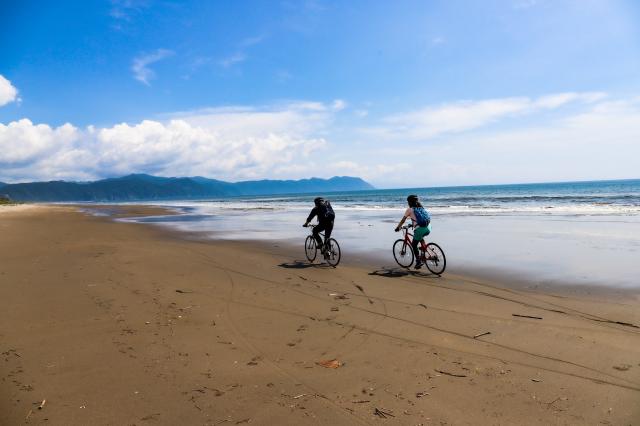 It’s a straight line from the trailhead of Mount Shamanbe in Oshamanbe Town to the Pacific Ocean! Ride along the water’s edge of Shizukari’s sandy beach. After a hard day’s work to get over the mountain pass, the downhill slope is exhilarating.