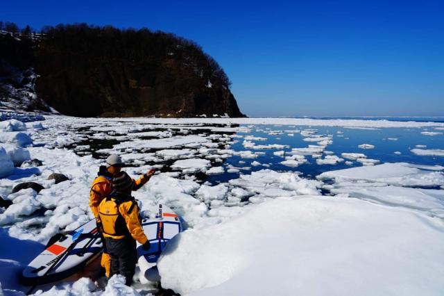 Drift ice can be seen floating every year in the Sea of Okhotsk, located in northeastern Japan. The drift ice season runs from January to March, with the peak drift ice SUP season occurring from late February to early March.