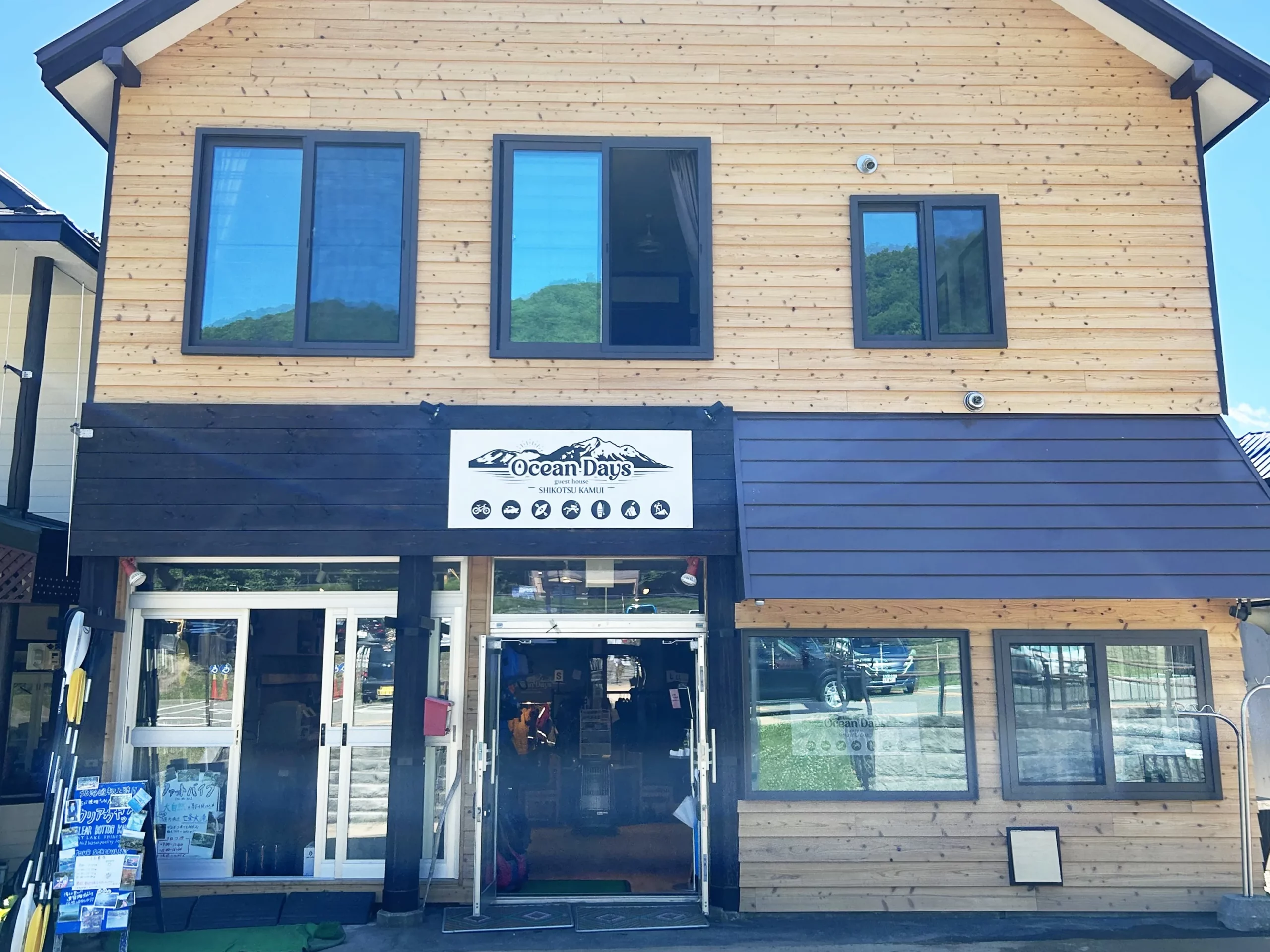If you are driving, set your navigation system to “Shikotsuko Onsen” and head to the shopping street parking lot on the shore of Lake Shikotsu. Looking from the parking lot, you will see the “Guest House Shikotsu Kamui” sign in the center of the shopping street.