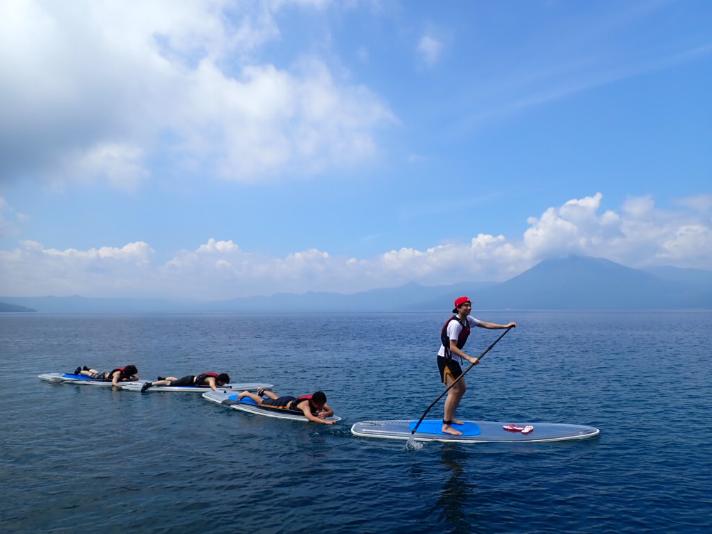 This tour is held in Shikotsu-Toya National Park by the only SUP tour shop on Lake Shikotsu! TheSUPs float on the water and glide smoothly. The view from standing on the board is exceptional, and if you want to feel more connected to nature, you can paddle sitting or lying down too!