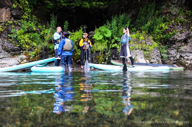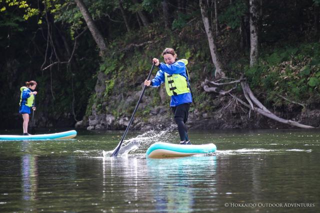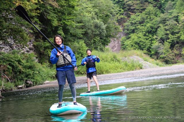 River SUP on the clear waters of the Saru River in Hidaka, near Furano