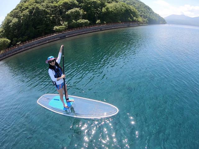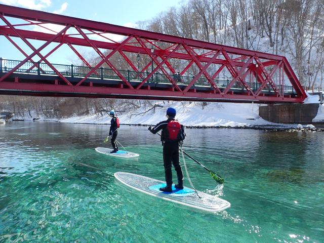 In Winter- This is the season with the highest transparency of the year. Trying out SUP in the clear air and snowy scenery is an extraordinary experience.